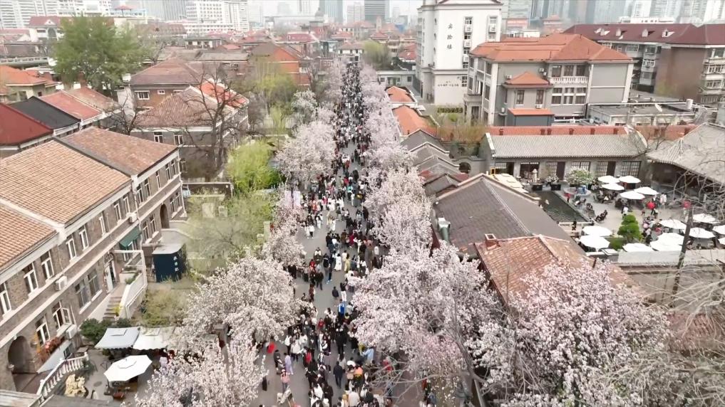 明媚四月,天津五大道历史文化街区千株海棠相约绽放,粉色花海绵延成片,百年小洋楼掩映其间。一年一度的海棠花节,让这份春日浪漫有了更多“打开方式”,吸引游客纷至沓来。
