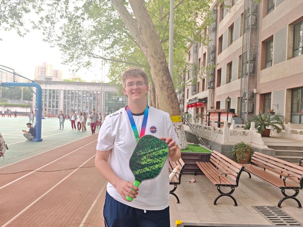 4月17日,美国高中生瑞安·詹姆斯·科克里在北京中学展示签名球拍。新华社记者陆君钰摄 18日晚,中方代表、学生和美国访华团齐聚北京市第十中学报告厅,总结交流参访感想。 “我的母亲是历史教师,一直告诉我要多体验不同文化。人与人之间文化背景不同,却总能找到深刻共鸣,这次中国行完全印证了她的话。匹克球、乒乓球这些运动用最纯粹的方式架起桥梁,让我们建立跨越大洋的紧密联系。”伊恩代表美国学生上台总结发言,赢得阵阵掌声。 台下,蒙哥马利县教育局体育部主任、访华团团长杰弗里·基思·沙利文博士对此深有同感:“体育创造了一种独特的联结。与对手激烈竞争、与伙伴并肩作战,这不仅培养了孩子们的团队合作意识和同理心,更锻炼了他们‘赢得优雅,输得有尊严’的精神和风度。” “今早在长城时,女儿西莱斯特突然按住我的肩膀说,‘爸爸,闭上眼睛深呼吸,你此刻正站在中国长城上,我希望我们永远记住此刻。’”沙利文说,“真正触动我的是从抵达中国那一刻起感受到的盛情。以匹克球为契机,在每所学校的交流都让友谊真实生长。离别时孩子们依依不舍,忙着互加联系方式。这正是我们期待的、体育带来的持久联结。” 策划:陈芳 记者:陆君钰、马卓言、有之炘 新华社国内部出品 |