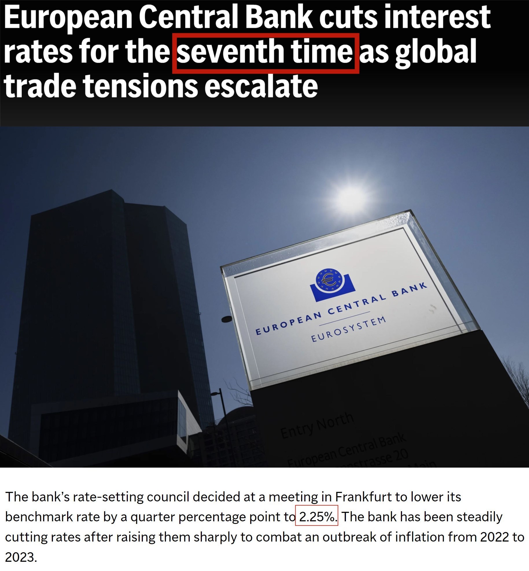 △阿特·霍根接受雅虎财经网站采访 “美国的政策正在损害市场对美元的信心” 值得注意的是,在特朗普指责美联储不同意降息的时候,欧洲央行已经被迫行动起来了。 欧洲央行17日在位于德国法兰克福的总部召开议息会议,决定将三大关键利率下调25个基点,这是欧洲央行自去年6月以来第七次降息。