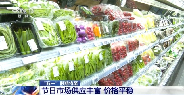 京东七鲜超市北京五彩城店店长 刘巍:在五一前夕,最新启动了天津等几十个蔬菜、水果、海鲜、肉类的产地直发,整体供应量比平常增加了15%以上 。鱼、虾等这些海鲜水产品,依托冷链物流体系,从捕捞到装箱最快可以24小时到达门店。此外,配送的岗位比平常增加大概20%以上的人力,保障节庆市场的供应。