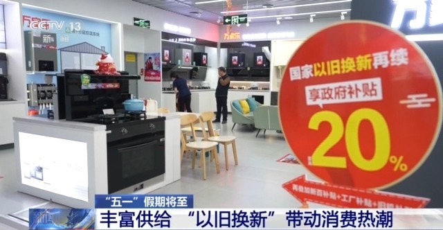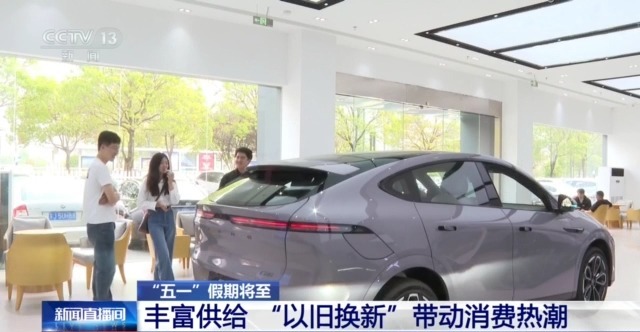 量足价稳供应有保障,当地还利用自建的供销集配平台,打通城市社区生活必需品配送的最后一公里。 凌晨2点,在江西南昌一家供销平台的中央仓储里,配送员们正在忙着把米菜油订单需求下达到各个专用仓库里。走俏的小袋装大米和面粉、杂粮等被分类装配进箱。 配送员 林海:这段时间订单特别多,几乎每天要工作到早上6点才能把所有订单发出。 商务大数据监测显示,节前全国生活必需品市场供应充足、价格总体平稳。节日期间,各级商务部门将加强值班值守,密切关注市场形势,持续做好生活必需品保供工作。 丰富供给 “以旧换新”带动消费热潮 当加力扩围的“以旧换新”政策与“五一”假期相遇,一场消费热潮正席卷全国。 从智能家电到新能源汽车,各地紧扣绿色化、智能化消费趋势,以真金白银的补贴、创新多元的活动,为消费者带来全新体验。