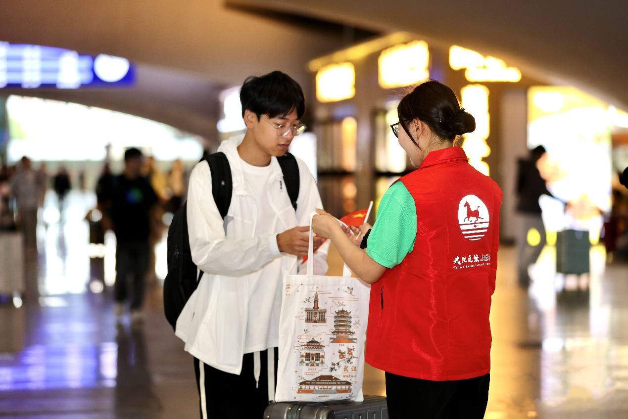 志愿者在武汉站为游客送上文旅大礼包 打造快进慢游的交通网络。增强国际交通通达功能,着力提升长江沿岸港口旅游综合服务能力,巡游出租车和网约车将在景区加大运力投放,打造游客友好型城市。 营造赏心悦目的旅游环境。创新采用情境再现、情景表演、场景体验等方法,让城市文脉“流动”起来,让游客“智”享旅程。 擦亮“近悦远来”金招牌。从争抢流量到深耕留量,武汉以绣花功夫破题。五一期间,旅游消费维权志愿者服务队将悉心服务游客;黄鹤楼公园在地铁站、公交站设置分流提示牌;武汉火车站站区办新增文明接驳服务,“一对一”帮扶。