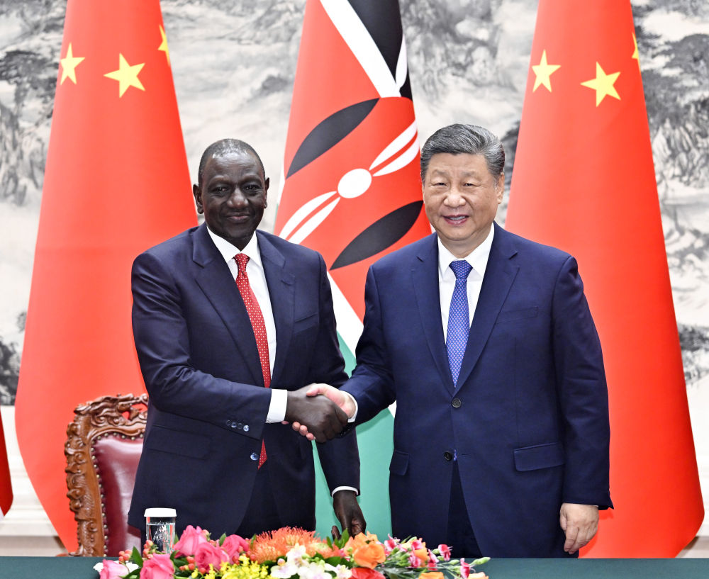 4月24日上午,国家主席习近平在北京人民大会堂同来华进行国事访问的肯尼亚总统鲁托举行会谈。这是习近平同鲁托握手。新华社记者 岳月伟 摄 在两国元首见证下,中肯双方签署20项合作文件,涵盖共建“一带一路”、高新科技、人文交流、经济贸易、新闻传媒等领域。 会谈中,习近平主席明确指出,无论国际风云如何变幻,中国真实亲诚对非政策理念不会变,中非患难与共、守望相助的初心不会变,中非合作共赢、共同发展的根本宗旨不会变。 三个“不会变”,彰显中国对非洲国家的重信守义,更传递出一个不惧国际风云变幻坚持和平发展、开放共赢的大国赋予世界的确定性力量。 当确定性、稳定性日益成为全球稀缺资源,中国所提供的确定性、稳定性,不仅令世界各国政要高度重视,也吸引着来自全球的工商界人士。 3月28日上午,40余位外资企业全球董事长、首席执行官以及商协会代表齐聚北京人民大会堂,参加习近平主席同国际工商界代表的会见。