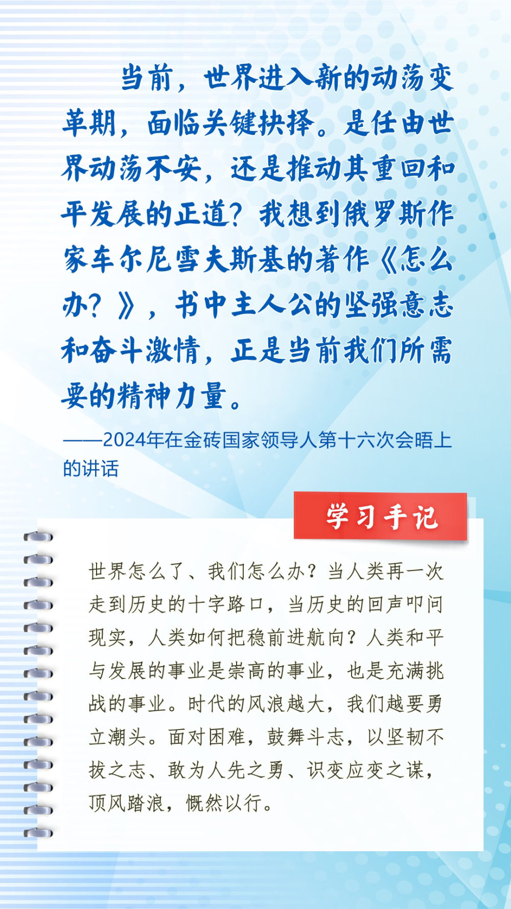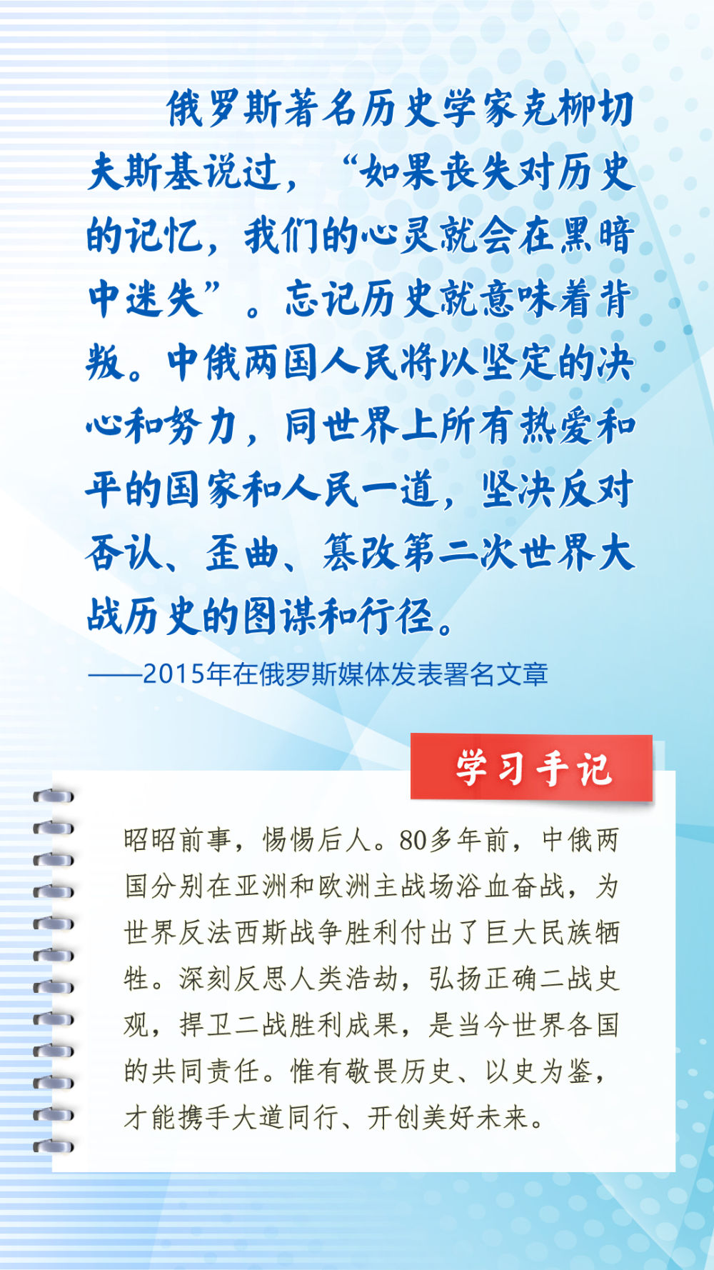 我们一起来学习品读这些饱含哲思的论述,从中感悟新时代中俄关系在复杂的外部环境下坚毅前行之道,感悟习近平主席作为大党大国领袖、世界级领袖的时代担当与天下情怀。