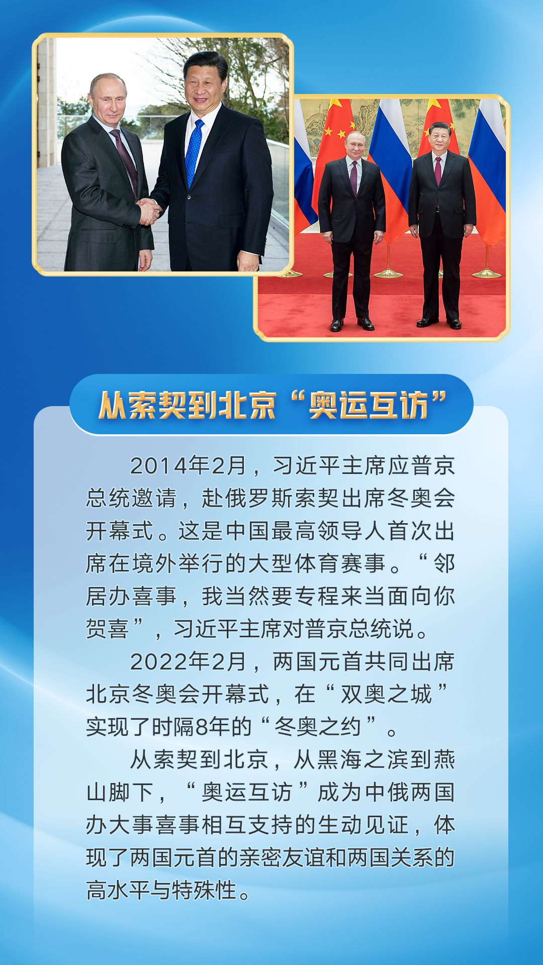习近平主席同普京总统这些年来的交往互动留下一个个难忘瞬间。