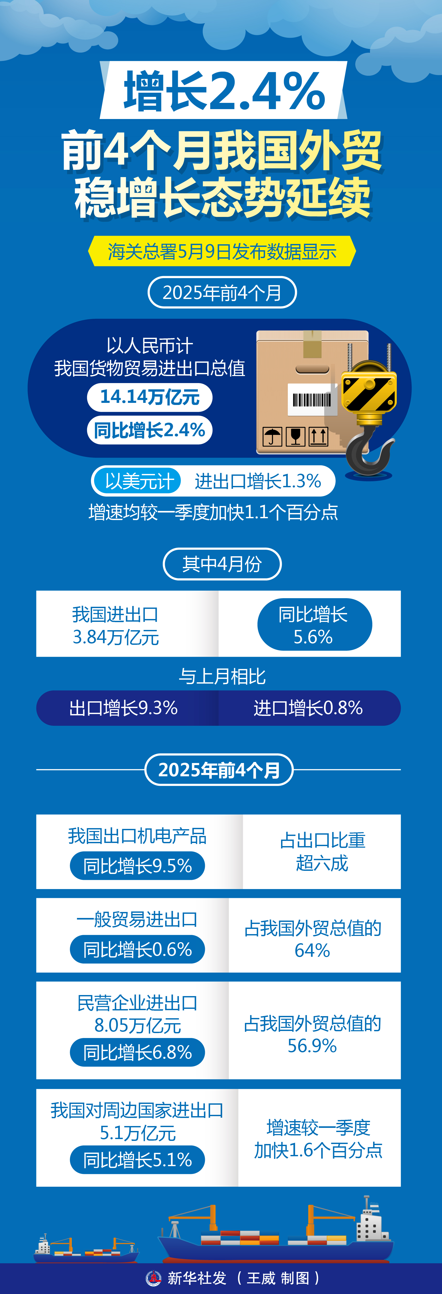 图表|增长2.4% 前4个月我国外贸稳增长态势延续