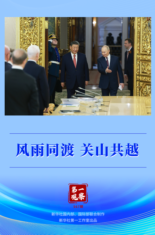 欢迎仪式,小范围、大范围会谈,签字和合作文本交换仪式,共见记者,欢迎宴会,茶叙……习近平主席对俄罗斯进行国事访问,5月8日这一天,中俄两国元首之间的亲切互动和深入交流,从上午10点一直持续到傍晚。 习近平主席在同普京总统共见记者时指出,面对变乱交织的国际形势,中俄两国要坚定秉持永久睦邻友好、全面战略协作、互利合作共赢精神,风雨同渡、关山共越,全面提升中俄关系的高度、维度、韧度,为世界和平和安全注入更多稳定性,为全球发展繁荣提供更强推动力。 “风雨同渡、关山共越”,精炼有力的八个字,传递出两个大国面向未来的战略抉择,也展现出大国领导人对历史大势的深刻把握。 当前,百年变局加速演进,人类社会走到新的十字路口。单边主义、保护主义逆流冲击世界,霸权主义、强权政治回潮来势汹汹,世界进入新的动荡变革期。各国尤其是大国作出何种抉择,将决定时代走向、影响世界格局。 面对前进道路上的阵阵“风雨”、重重“关山”,习近平主席在同普京总统茶叙时指出,只要中俄保持战略定力,坚持战略协作,就任何力量也阻挡不了两国实现各自发展振兴,阻挡不了中俄世代友好的民心所向,阻挡不了世界多极化和经济全球化的时代潮流。 老朋友再相聚,为中俄风雨同渡、关山共越擘画前进路线—— 习近平主席强调,中俄要坚持世代友好,做百炼成钢的真朋友;坚持互利共赢,做彼此成就的好伙伴;坚持公平正义,做国际秩序的捍卫者;坚持和衷共济,做全球治理的引领者。这“四个坚持”,既是对中俄携手走过的历史的经验总结,更是着眼当下与未来国际形势,对中俄关系不断迈上新高度的宏阔擘画。 老朋友新合作,为中俄风雨同渡、关山共越夯实厚实基础—— 习近平主席指出,中俄双方要坚持合作大方向,排除外部干扰,让合作“稳”的基础更坚实、“进”的动能更充足。访问期间,两国元首共同见证交换20多份双边合作文本,涵盖生物安全、投资保护、数字经济、检疫、电影合作等多领域。朝着高质量互利合作、高标准互联互通格局、深层次民心相通的目标,双方合作持续深入,让两国人民不断受益。 普京总统表示,俄中始终同舟共济、相互支持,两国友谊牢不可破。愿同习近平主席保持密切战略沟通,为两国关系发展提供战略指引,共同应对国际复杂形势挑战,深化全面战略协作,维护两国共同利益,推动世界向公正、民主、多极化方向发展。 不为一时一事所惑,不为风高浪急所扰。访问期间,两国元首签署关于进一步深化中俄新时代全面战略协作伙伴关系的联合声明,中俄双方还发表关于全球战略稳定的联合声明、关于进一步加强合作维护国际法权威的联合声明,向世界传递出不畏风雨、不惧关山、坚定同行的鲜明信号。 80年前,中俄两国人民付出巨大牺牲,赢得伟大胜利,为维护世界和平和人类进步事业作出彪炳史册的历史贡献。 习近平主席对俄罗斯进行国事访问并出席纪念苏联伟大卫国战争胜利80周年庆典,向世界彰显了“以史为鉴、共创未来”的大国担当与“风雨同渡、关山共越”的坚定信念。 正如习近平主席所指出的:历史和现实充分证明,持续发展和深化中俄关系,是传承两国人民世代友好的应有之义,是双方彼此成就、促进各自发展振兴的必然选择,也是捍卫国际公平正义、推进全球治理体系改革的时代呼唤。 策划:刘江、韩墨 主编:杨依军、朱基钗 主笔:邵艺博、胡梦雪、周天翮 视觉:张惠慧、高松龄 新华社国内部、国际部联合制作 新华社第一工作室出品 |