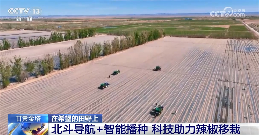 记者从郓城县农业农村局了解到,今年全县冬小麦种植面积145万亩,共启用350架植保无人机实施一喷三防作业,目前喷防作业已完成65%,预计5月12日可全部完成。 甘肃金塔:北斗导航+智能播种 科技助力辣椒移栽 立夏过后,在甘肃河西地区,辣椒移栽迎来黄金期,搭载北斗卫星导航系统的辣椒移栽机化身“智能农夫”,正在田间上岗工作。 在金塔县的一个农场,无人驾驶拖拉机牵引移栽机在田间平稳行进,打孔、栽苗,一次就能完成辣椒的移栽。搭载北斗导航系统的农机通过预设路线完成标准化作业,为辣椒苗铺设精准“生长跑道”。农户告诉记者,以往种植时存在起垄不直、劳力不足、效率低等问题。现在有了新农机,每株辣椒都有均衡的生长空间,还增强抗倒伏能力,辣椒苗成活率大幅提升。