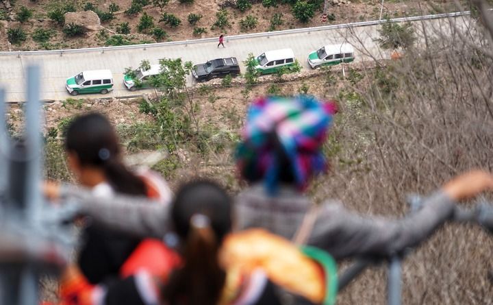 四川省昭觉县阿土列尔村(悬崖村旧称)村民沿着悬崖钢梯下山(2020年5月13日摄,无人机照片)。新华社记者 王曦 摄 伍果20岁时从美姑县嫁到阿土列尔村(悬崖村的旧称)。上山的路步步惊心,需要走过13处几乎垂直的悬崖。由木棍、钢筋、藤条编成的“天梯”有些已近腐朽,一些路段只能踩下半个脚掌,走上去小腿止不住地打颤。 2013年,当精准扶贫的号角在中国大地上吹响,伍果即将生下大女儿。算着临产的日子,她提前10多天挺着大肚子,在家人的护送下小心翼翼地下山。每走一步她都紧紧抓着天梯,如同为腹中的孩子紧紧握住命运。