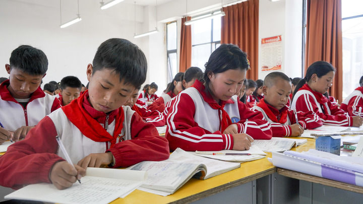 四川省昭觉县城北镇沐恩邸中心小学学生在上语文课(2025年4月21日摄)。新华社记者 尹恒 摄 “听说现在村里越来越好了,等孩子们再大一点一定要全家回去一趟。”伍果的家里摆着一件绘有彝族传统纹饰的漆器,里面装满来自悬崖村的泥土和草,也装着割不断的乡愁。 她想让孩子们知道,她们的根在悬崖上。 她更想让孩子们明白,因为有幸生于这个伟大的时代,他们才能脚踩坚实的大地,如索玛花一般怒放。