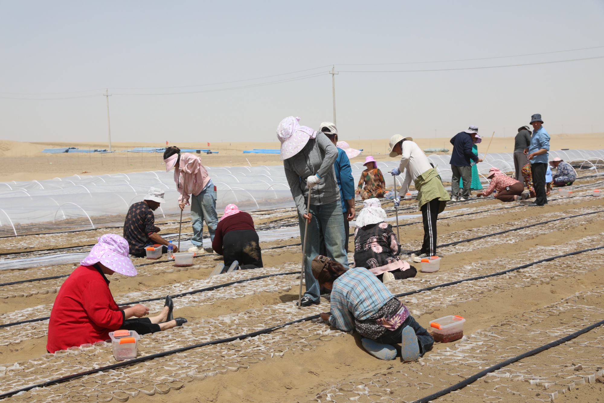 工作人员正紧张有序地进行灰枣育苗工作 (日孜完古丽·买吐地 摄) 近年来,墨玉县坚持“生态优先、绿色发展”,鼓励企业参与防沙治沙,通过“企业投资+科技支撑+群众参与”模式,种植沙枣、红枣、杏树和桃树等乔木林以及红柳、梭梭、四翅滨藜和沙棘等灌木林,实现生态效益与经济效益双赢。