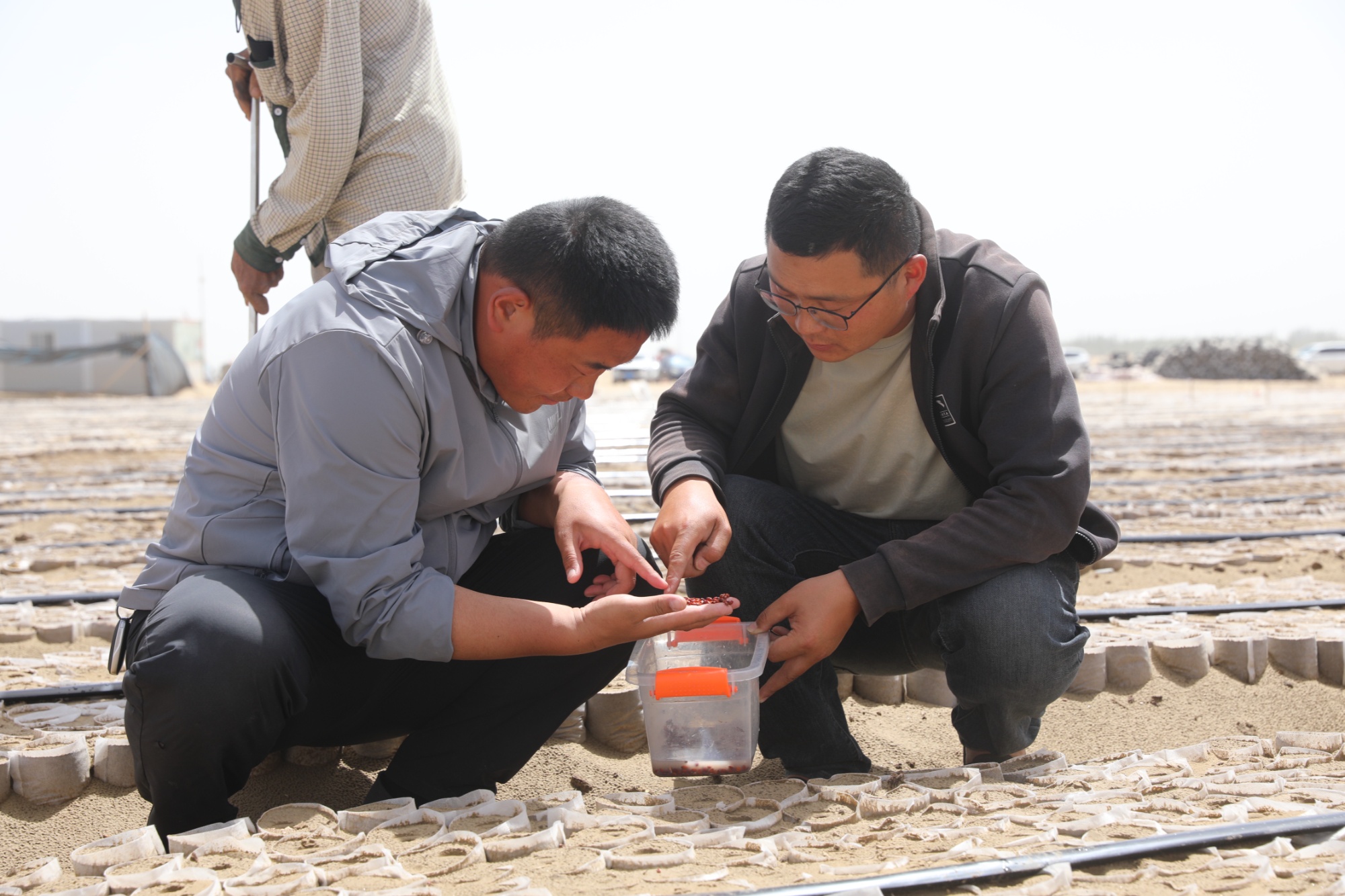 治沙现场,育苗工作有序推进 (日孜完古丽·买吐地 摄) 在防沙治沙作业现场,河南全林有限公司负责人李腾飞的身影频繁出现。从土地平整到拱棚育苗,他全程参与技术指导,手把手教周边群众如何育苗。在他的带动下,这一片防沙田在作业过程中,每日可为200余名周边群众提供灵活就业、增加收入的机会。 “防沙治沙不是简单种树,而是要‘以沙养沙’,再跟沙漠‘要经济’。我们通过改良土壤、科学选种,想让沙地长出‘金果子’,既能固沙,又能带动乡亲们增收。灰枣三年后进入丰产期,我们预计亩产可达600公斤至800公斤,届时将形成治沙、产业、就业的良性循环。”河南全林生态农业发展有限公司负责人李腾飞说。