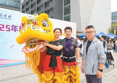 走进位于浙江省的湖州师范学院体育馆,只见一头头色彩鲜艳的“狮子”踩着音乐鼓点,翻、滚、腾、跃,动作矫健洒脱。脱下狮披,发现舞狮的同学全是外国留学生。