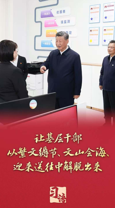 2024年3月,全国两会闭幕不到一周,习近平总书记赴湖南考察,专门深入了解农村基层减负情况。在常德港中坪村,听说村部挂的牌子、需要村里开的证明、村干部的微信工作群都变少了,总书记点头肯定:“党中央明确要求为基层减负,要坚决整治形式主义、官僚主义问题,精兵简政,持之以恒把这项工作抓下去。”