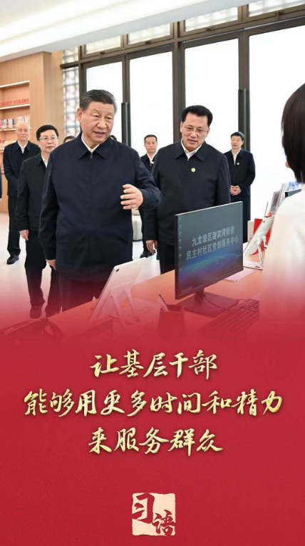 “过去更多的是要求群众去做事,现在更多的是党员干部给群众办事、做服务,这是一个根本的变化。”2024年深秋时节,在湖北省咸宁市嘉鱼县潘家湾镇四邑村党群服务中心,习近平总书记被墙上张贴的《服务群众事项清单》吸引了目光。习近平总书记说,“要持续为基层减负,让基层干部能够用更多时间和精力来服务群众。”