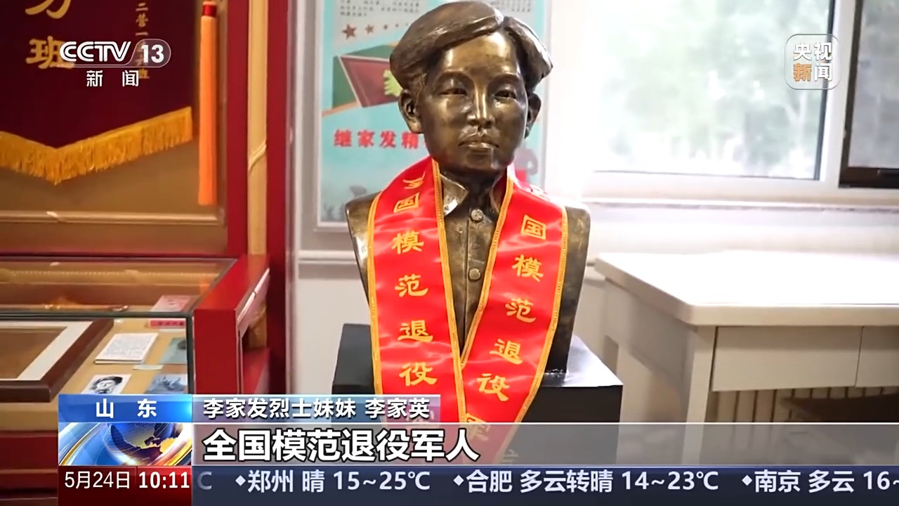 曹家麟是李家发烈士赴朝作战时67军199师的战友,近20年,他一直致力于寻找志愿军烈士安葬地,以及为无名烈士寻亲。2018年,在朝鲜江原道金化郡九峰里志愿军烈士陵园,他找到了李家发烈士的安葬地。 如今,李家英老人已经81岁了,作为李家发烈士唯一在世的直系亲属,她也有自己的心愿。2010年6月份开始,李家英着手给哥哥李家发烈士建立纪念馆。 奔赴军营 给“哥哥”戴上自己的荣誉绶带 李家发牺牲后,李家英总会想起和哥哥在一起的日子。长大后,李家英主动报名参军,选择了和哥哥一样穿上军装。 李家发烈士妹妹 李家英:我要接过哥哥的枪,保卫我们伟大的祖国,我要向他学习。 1967年,23岁的李家英继承哥哥的遗志,穿上军装,成为解放军第105医院的一名女兵。她参军第一年就光荣地加入中国共产党,荣获“五好战士”称号。 2024年,李家英老人获得了全国模范退役军人称号,她一直有个心愿,就是想去哥哥曾经的部队看看。为了完成李家英老人的心愿,记者和李家发烈士曾经的部队取得了联系。李家发烈士参战时所在的部队是67集团军199师595团1营1连,现为第80集团军某旅红一连。 到了出发的这天,李家英老人特意换了一身新衣,早早地和外孙陈庆豪站在门口等待着。上午10时多,列车出发了。从安徽到山东,高铁需要5个多小时。火车换乘汽车,下午5时多,李家英老人来到了李家发烈士曾经所在的部队营地。