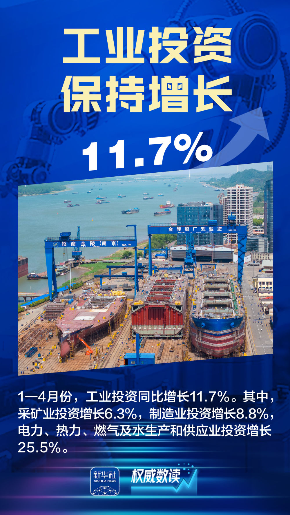 国家统计局、工信部等部门最新发布的数据显示,今年前4个月,我国工业企业利润增长加快、工业投资保持增长、装备制造业引领作用突出、“两新”政策效应持续显现……一系列数据,充分展现出我国工业经济的强大韧性和抗冲击能力。