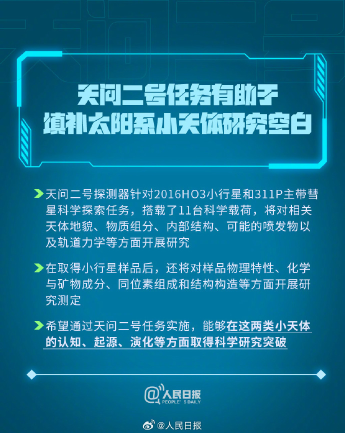 一觉醒来天问二号发射成功了!我国开启小行星探测与采样返回之旅。天问二号任务的目标是什么?有哪些困难和突破?相比天问一号,天问二号有何难点?戳图了解↓↓共同关注,点赞中国航天!