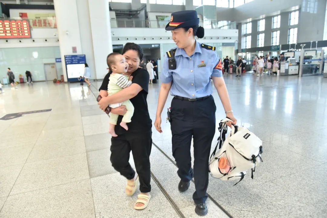 在火车站熙攘的人群中,客运值班员注意到了抱着孩子、行李繁重的她。没有丝毫犹豫,值班员快步上前,接过沉重的背包。那一抹制服蓝,如同一束温暖的光,照亮旅客匆忙的行程。 6 中青报@韩旭刚