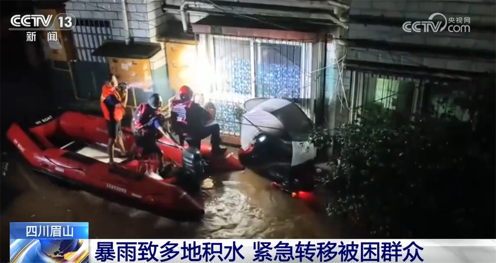 凌晨4点多,眉山天府新区一小区低洼处的居民楼积水严重,其中有两栋单元楼的一楼被淹没,水位逐渐上涨到了二楼,有居民被困在家中。消防员研判后,拆除了这两栋单元楼二楼住户的防盗窗及楼梯间的玻璃窗,打开救援通道,利用橡皮艇转移被困居民。