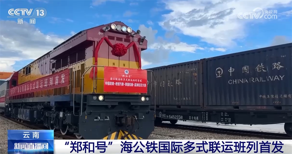 央视网消息:7月4日,“郑和号”海公铁国际多式联运班列从云南昆明首发,沿中老铁路直抵老挝万象,随后再分成三条线路,分别运至泰国、新加坡和孟加拉国。其中,中国昆明至孟加拉国吉大港为新开线路。新航线绕开马六甲海峡,运输距离缩短三分之一,时间缩短二分之一,全程仅需18天左右。