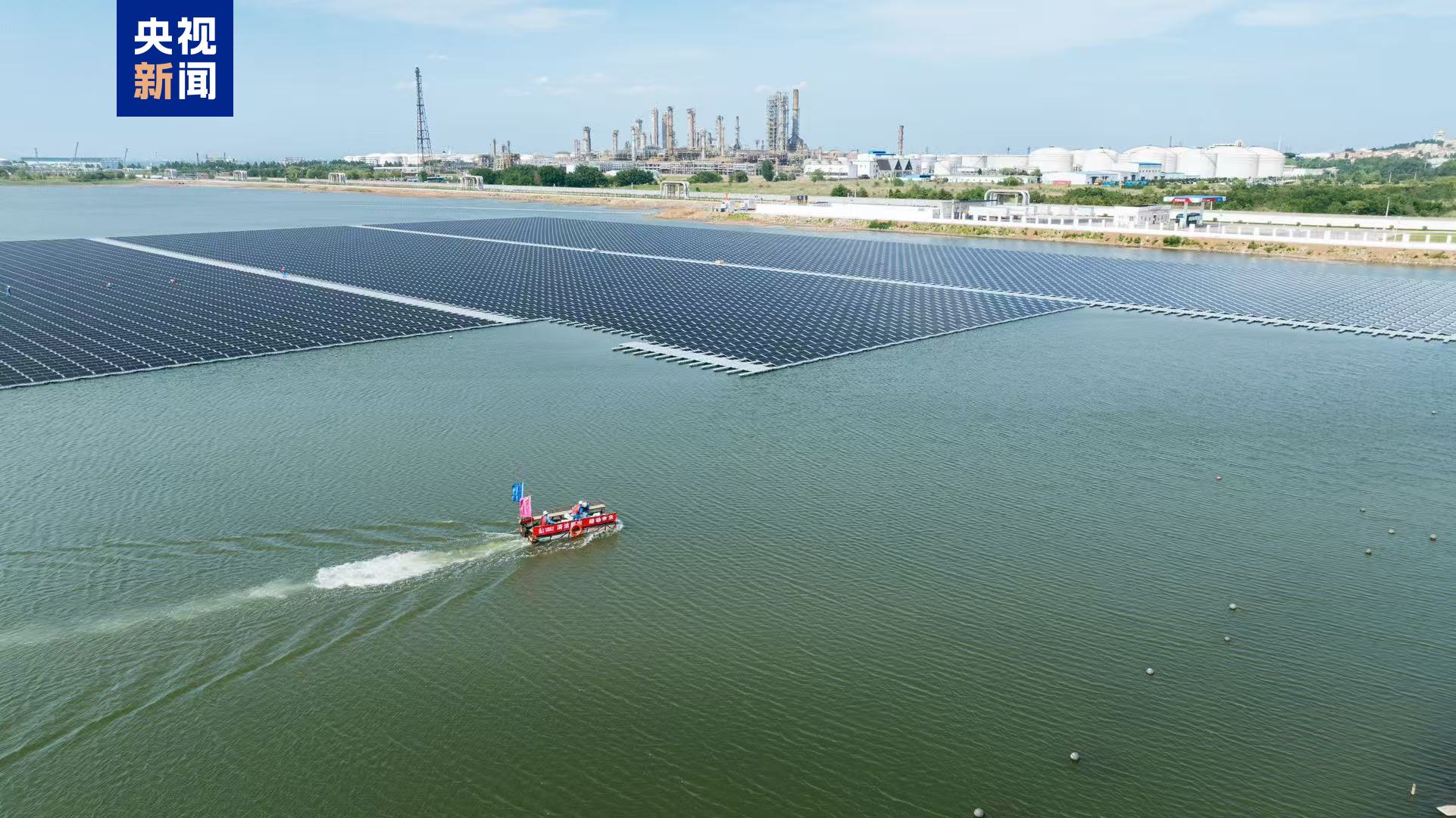 此次投用的 青岛炼化全海水环境漂浮式光伏项目 占地面积约60000平方米 装机容量7.5兆瓦