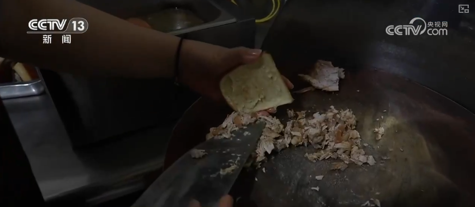 这种小吃叫作锅盔牙子,是咸阳最有代表性的小吃之一。关中地区的人们把烙饼叫作锅盔,将烙饼制成月牙形,再夹上腊汁肉,就是咸阳特有的锅盔牙子。它和陕西著名的“肉夹馍”类似,但是更加小巧精致,吃起来更加酥脆。