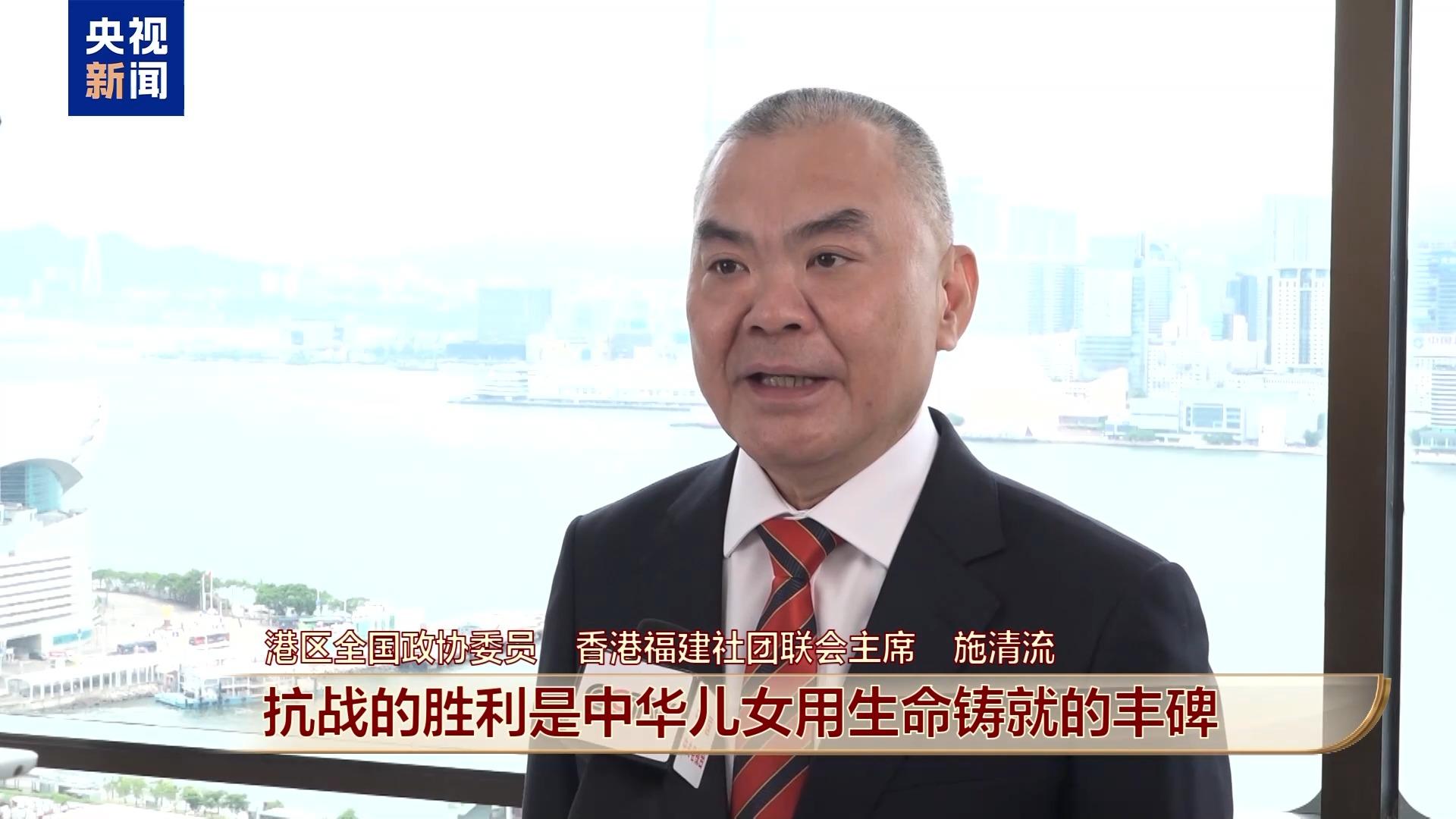 港区全国政协委员、香港福建社团联会主席 施清流:抗战的胜利是中华儿女用生命铸就的丰碑。当年香港作为国际援华通道,无数先辈冒着炮火运送物资,印证了"天下兴亡 匹夫有责"的担当。今天我们更深刻地领会到,香港的命运从来都与祖国的命运紧密相连。筑牢国家安全防线,凝聚"爱国爱港"共识是香港由治及兴的根基。