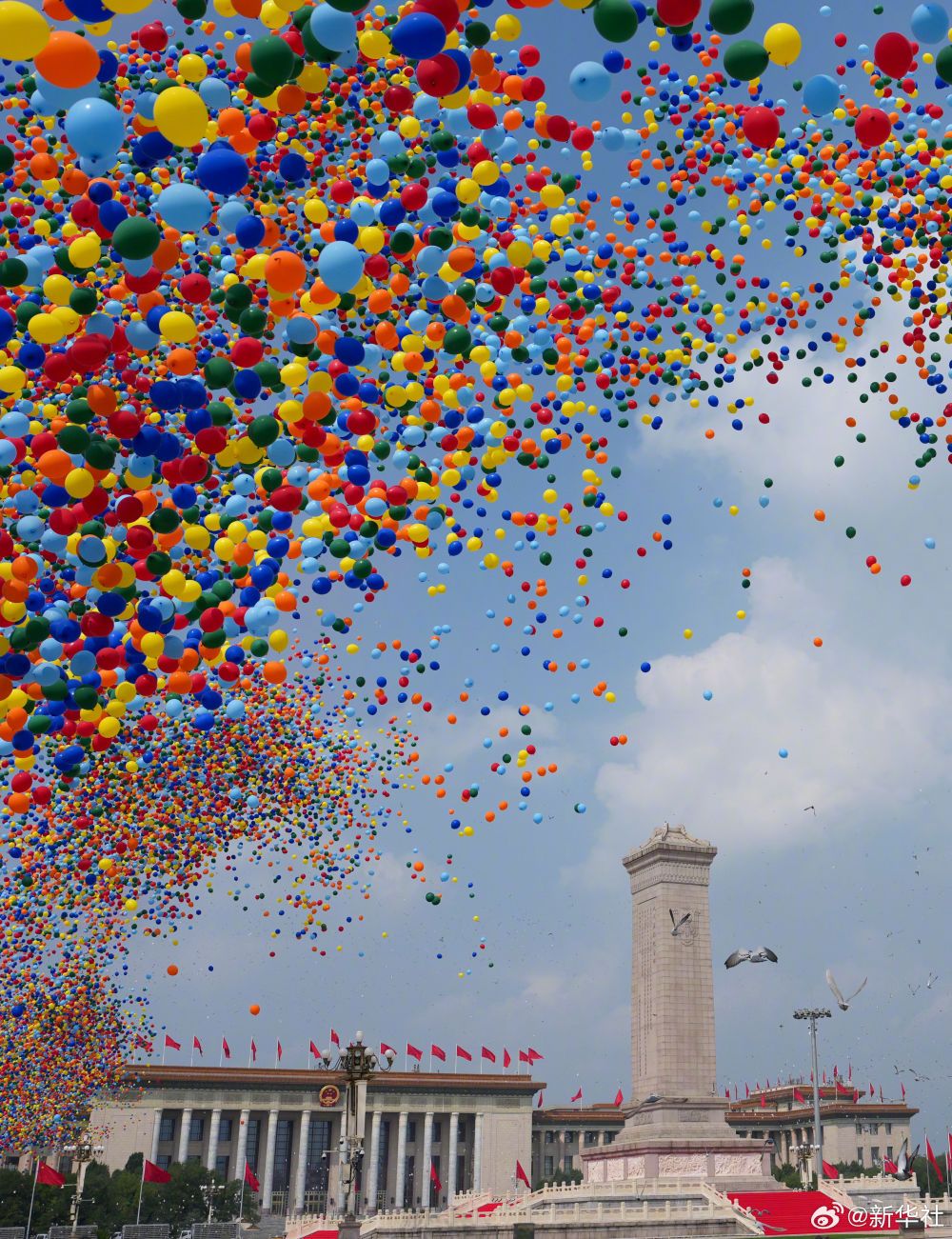 和平鸽展翅高飞,彩色气球腾空而起!回望峥嵘的血火岁月,让我们以山河为证、以日月为铭,共同见证,英雄的中国人民永远不屈,和平的阳光永远灿烂!让我们为胜利喝彩为祖国点赞!(记者:张宏祥、费茂华、江文耀、周荻潇、牟宇)