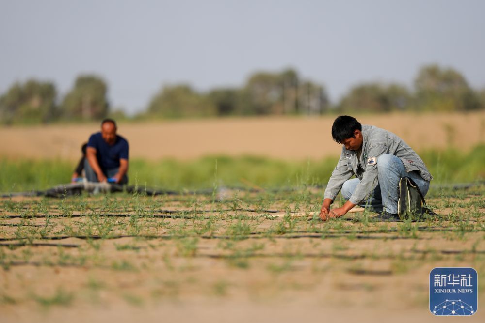 新疆巴音郭楞蒙古自治州尉犁县位于塔克拉玛干沙漠边缘,当地通过发展罗布麻产业,"管寸草不生的沙漠要土地",实现人进沙退、增收致富,探索出一条生态保护与经济发展协同并进的新路。