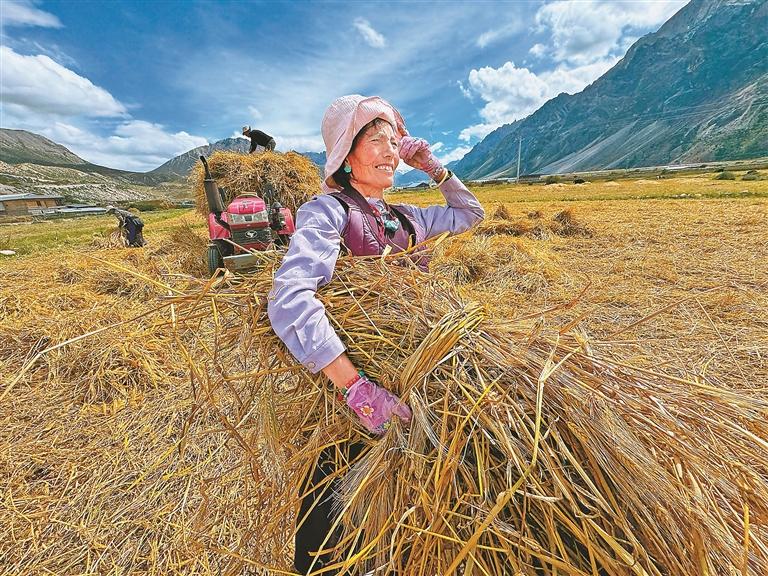 林芝市工布江达县错高乡结巴村村民秋收场景。本报记者白玛泽旺 次仁平措摄