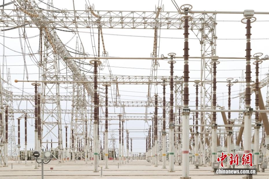 哈密南—郑州±800千伏特高压直流输电工程(简称"哈郑直流")是中国首个"双八百"特高压直流输电工程,也是中国实施疆电外送的重要枢纽工程。图为新疆哈密,天山换流站交流区域。