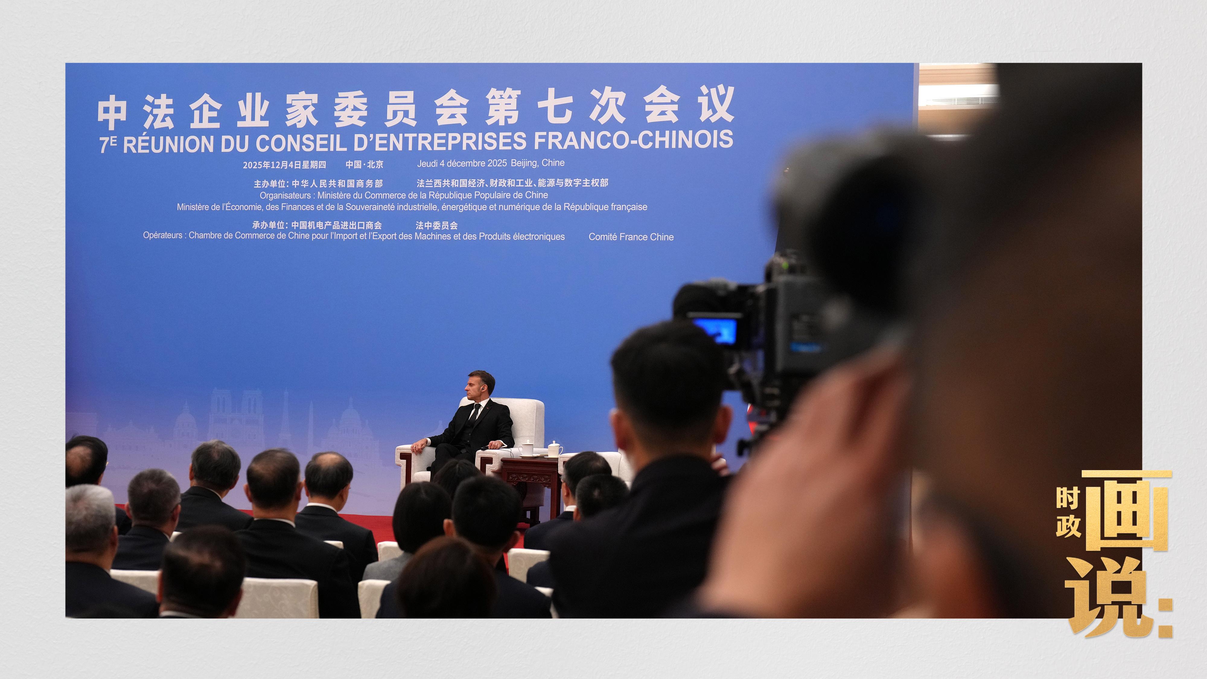 △国家主席习近平在北京同法国总统马克龙共同出席中法企业家委员会第七次会议闭幕式,马克龙总统在闭幕式上致辞