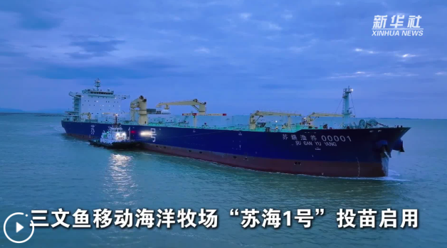 三文鱼移动海洋牧场“苏海1号”投苗启用
