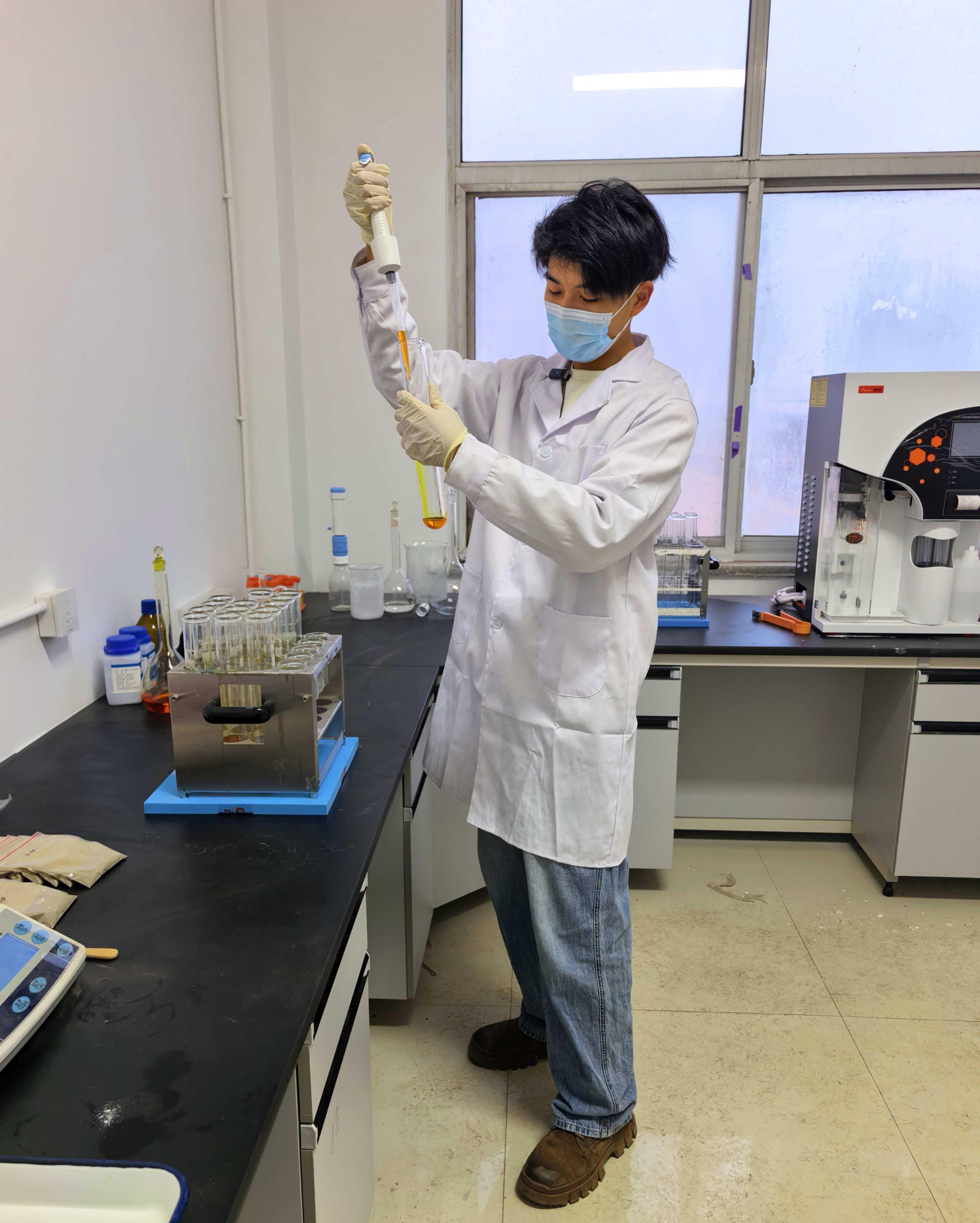 中国农业大学“白寨科技小院”研究生李康宁在实验室测量甜叶菊成分含量。农民日报全媒体记者 李杰 摄