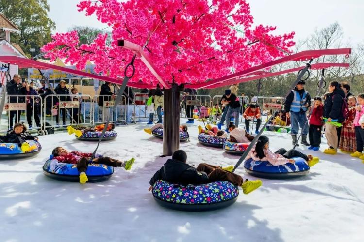 近期,无锡梅园最新打造的集冰雪游玩、打卡、亲子、互动于一体冰雪世界热闹非凡,赢得了不同年龄段游客的广泛好评,仅开放当天,就吸引了超万人前去打卡。雪乡打卡点、雪乡大滑梯、雪橇、雪上摩托……6600㎡的冰雪天地将欧式雪乡与江南梅花融合,形成“冰雪+赏梅”特色IP,把北方的冬日乐趣搬来江南。