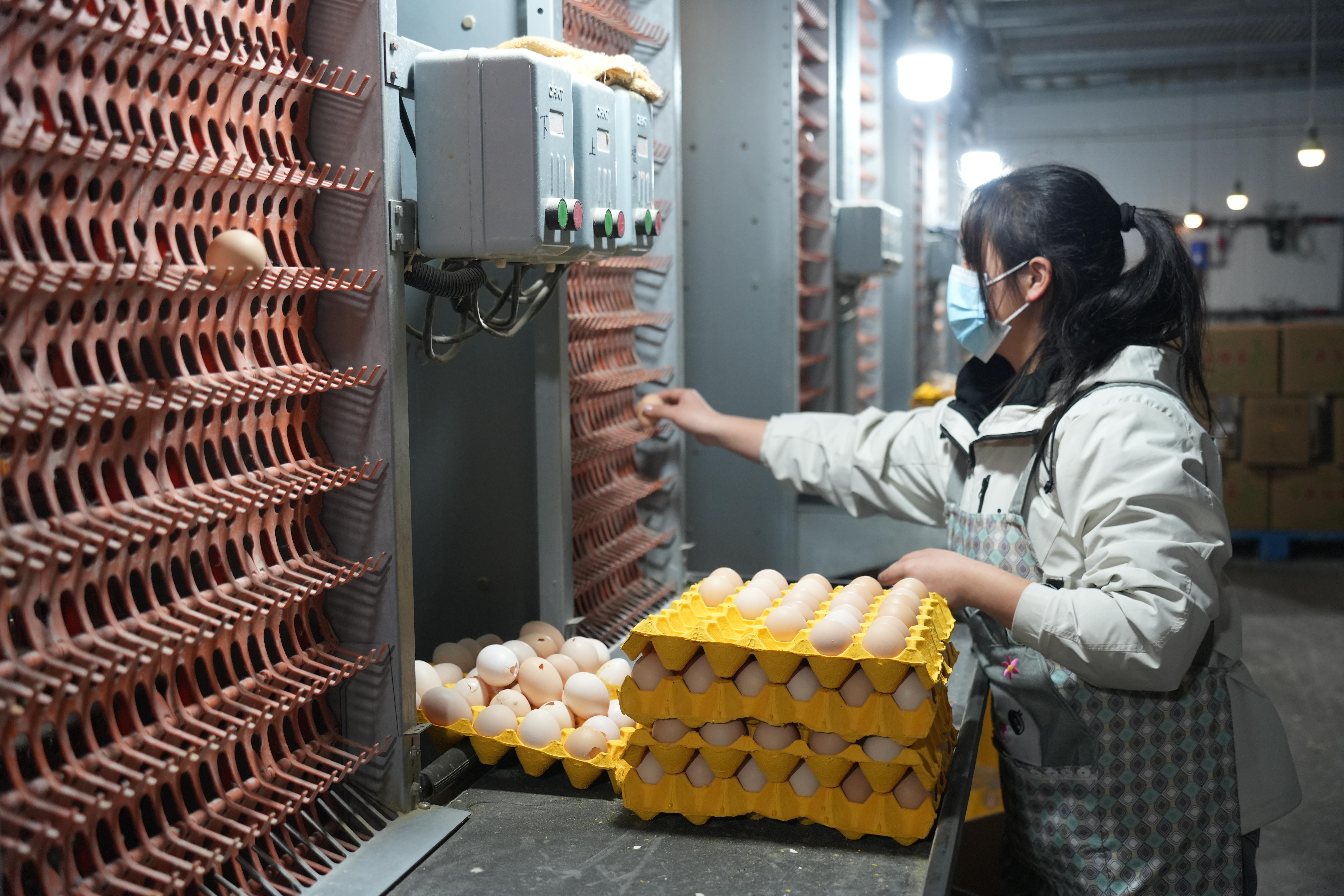 工作人员正在分拣鸡蛋。新华社记者 田金文 摄