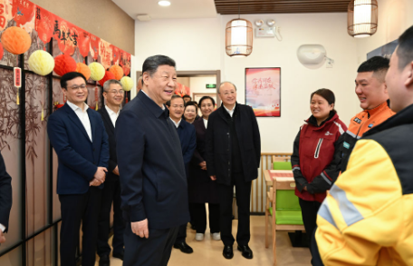 2月10日,中华民族传统节日春节即将到来之际,习近平总书记来到北京市西城区新街口街道父母食堂考察。见到在这里休息的3名快递小哥,总书记为他们付出的辛劳和作出的贡献点赞。