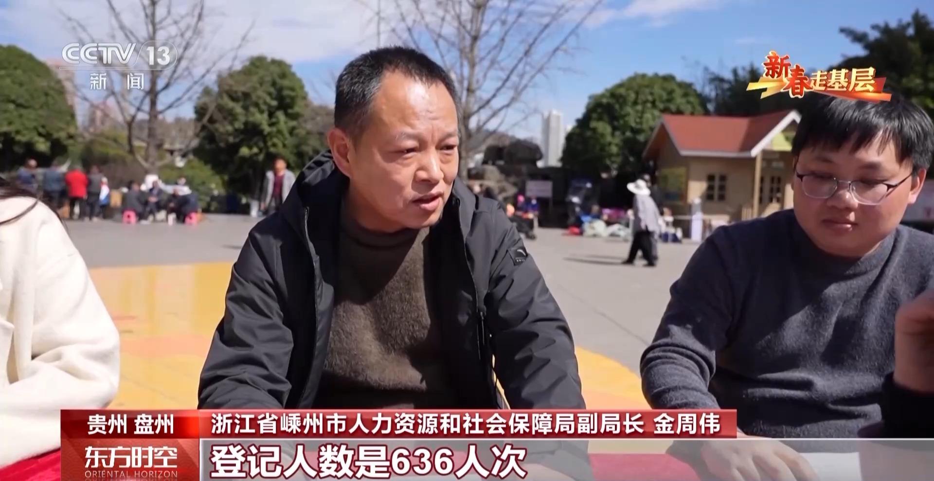 总台央视记者 唐蕾:这里是贵州盘州市春风行动招聘会现场,我们看到前来咨询的劳动者非常多,气氛非常火爆,来自浙江、江苏、贵州等地的65家企业带来了3000多个岗位。