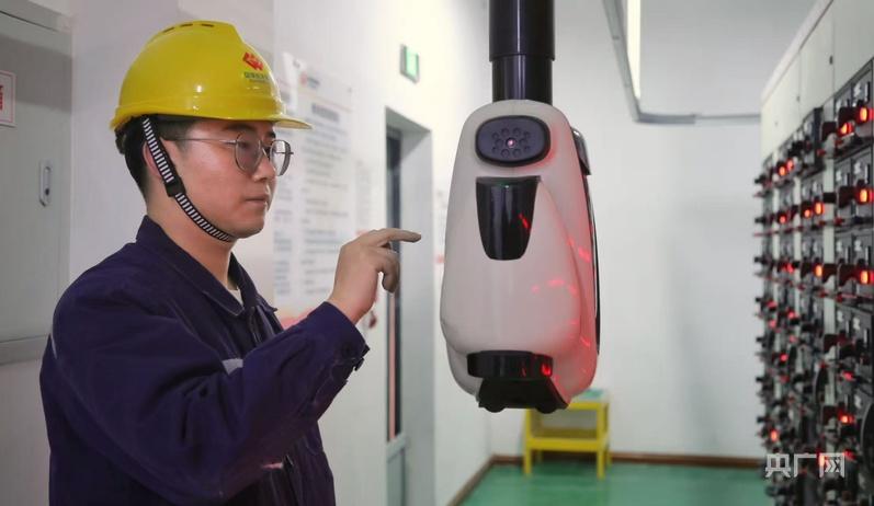 马小强通过操控机器人完成对光伏板组的日常检测(央广网记者 贾海元 摄)