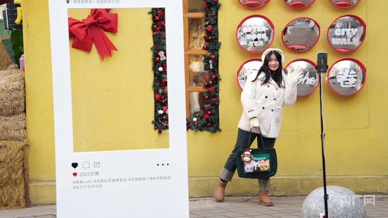 一位游客正在沈阳八经咖啡小巷打卡拍照(央广网记者 宗韶峰 摄)