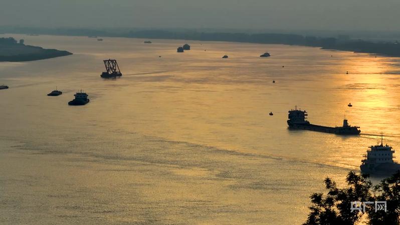 九江长江段,一幅繁忙的航运画卷(央广网发 王林华 摄)