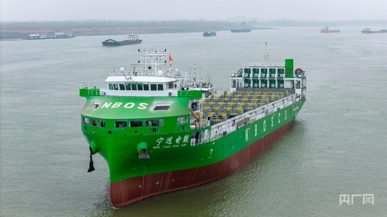 国内首制大容量电池换电运输船“宁远电鲲”号顺利离厂海试(央广网见习记者 尹博 摄)