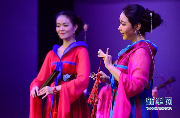 南乐团年轻演员在对唱南音曲目。新华社记者 魏培全 摄 南音也称“弦管”、“泉州南音”,是中国现存最古老的乐种之一,有“中国音乐史上的活化石”之称。两汉、晋、唐、两宋等朝代中原移民把音乐文化带入以泉州为中心的闽南地区,并与当地民间音乐融合,形成了具有中原古乐遗韵的文化表现形式——南音。 泉州南音演奏演唱形式为右琵琶、三弦,左洞箫、二弦,执拍板者居中而歌,这与汉代“丝竹更相和,执节者歌”的相和歌表现形式一脉相承。其工尺谱记法自成体系,是古代音乐记写形制之遗存。横抱演奏的曲颈琵琶、十目九节的洞箫、二弦、三弦击拍板等,也都因袭古乐器遗制。南音曲目有器乐曲和声乐曲两千余首,蕴含了晋清商乐、唐大曲、法曲、燕乐和佛教音乐及宋元明以来的词曲音乐、戏曲音乐等内容。南音以标准泉州方言古语演唱,读音保留了中原古汉语音韵。演唱时讲究咬字吐词,归韵收音。南曲曲调优美,节奏徐缓,古朴幽雅,委婉深情。 泉州南音有深厚的群众基础,作为陶冶情操、自娱自乐的文化表现形式,它与闽南人的生活密切相关,闽南人聚居之地几乎都有民间南音社团。除了在闽南地区的泉州、漳州、厦门和港、澳、台地区以外,泉州南音还流播到菲律宾、印尼、新加坡、马来西亚、泰国、缅甸、越南等国家,成为维系海外侨胞和台湾同胞乡情的精神纽带,对增进民族认同感也起到了积极作用。 2006年,南音列入第一批国家级非物质文化遗产名录;2009年,南音被联合国教科文组织列入人类非物质文化遗产名录。 |