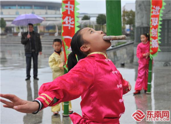 方振南在建瓯芝山中心小学指导学生挑幡有十个年头了。每天放学,芝山中心小学的孩子们都会跟着方振南练一个多小时再回家。经过多年的坚持和努力,学校的少儿挑幡队员们多次应邀外出表演,成为该校办学的一大特色项目。