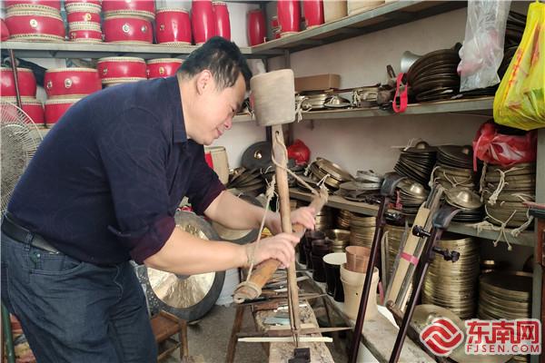 陈金福为乐器增加铜片。东南网记者 杨超斌 摄