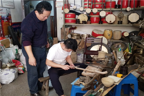 制作乐器的工具。东南网记者 杨超斌 摄 传统手艺的传承大多子承父业。如今,如何更好的发展莆仙传统乐器制作技艺的重任落在了陈金福的儿子陈篙松肩上。 科班出身的陈篙松在大学毕业后选择了回到父亲的小店,背负起第七代传承人的责任与使命,传承和坚守这项“事业”,并希望利用自己学到的新知识、新理念让莆仙传统器乐焕发出新的光彩。 问及学成归来,为何选择这充满着未知变数事业的缘由时,陈篙松显得不以为意。“也许是习惯吧,从小就是在父亲制作乐器的敲敲打打声中长大,自己也在不断学习制作。制作传统乐器已经很自然地成为我生命中的一部分。这些传统的东西挺宝贵的,感觉这么丢了就太可惜了”。 陈篙松告诉本网记者,莆仙传统乐器最初的形式和种类是十分多样的,但是随着整个社会文化的发展,有些乐器越来越不被“需要”了。如莆仙戏中用于丑角出场时使用的笛管以及演出苦情戏时使用的文管,集拉弹于一身的文枕琴,做工精美的碗胡等,这些具有莆仙特色的传统乐器的市场需求也越来越少,面临着被“淘汰”的局面