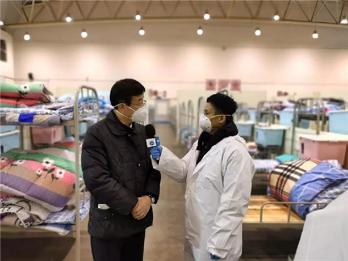 新华社国内部副主任张旭东(右)采访中国工程院副院长、中国医学科学院院长王辰院士。 针对海外关切,加强对外报道。对外稿件被美联社、路透社、法新社、英国每日邮报等境外媒体广泛采用,数十条英文稿被境外媒体采用过百家。在世卫组织发布此次疫情构成“国际关注的突发公共卫生事件”后,第一时间播发权威部门表态;针对有外媒曲解世卫组织声明,及时公布世卫组织官网声明全文和视频。坚持每天推出英文评论,驳斥美西方抹黑污蔑,如针对美国官员“中国发生疫情有助于加速制造业回流美国”等言论,采写《乘人之危不会让美国伟大》等英文评论,得到海外网友积极响应。新华社海外社交媒体账号集群新冠肺炎报道总浏览量突破4亿次、互动量超过2500万次。推出“社交媒体舆情观察”专题,多方集纳海外网友留言,播发《中国人的坚强乐观温暖了世界》《谣言粉碎机》等稿件,取得良好对外传播效果。 发挥全媒优势,创新话语表达。把融合发展成果充分运用于此次抗疫防疫报道。开设“我们在武汉”“隔离区直击”“民生直通车 同心战‘疫’”“新华社记者武汉Vlog日记”等全媒体报道栏目,组织新型冠状病毒核酸检测、方舱医院抢建收治等直播报道,带领受众身临其境走进抗击疫情现场,平均点击量千万次。围绕火神山、雷神山医院建成交付使用,综合运用无人机航拍、卫星数据等多种报道手段,推出《卫星高空“监工”,看雷火双神山如何迅疾如雷》《火神山医院是如何炼成的?》等系列新媒体报道,动态展示医院建设从无到有全过程,画面震撼、说服力强。制作推出原创MV《挺住,武汉》《我在你身边》、音乐纪录片《坚定希望》以及线上公益音乐会《坚定希望 中国加油》等,取得刷屏之效。
