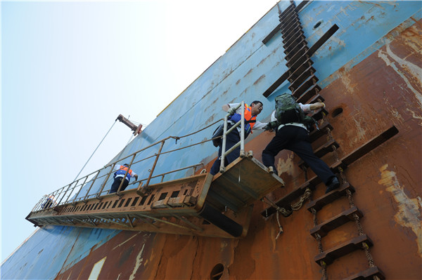 攀爬悬梯如过天险,党员干部身先士卒。福建海事局 供图