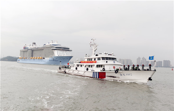 护航大型邮轮安全进港,助力厦门邮轮母港建设。福建海事局 供图